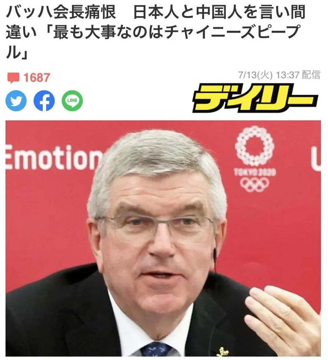 这种舆论气氛下,巴赫在来日本后的首场记者会上嘴瓢,把“日本人民”说成“中国人民”最重要。确实太让日本人民太不是滋味了,这还从哪儿看得出来重要。