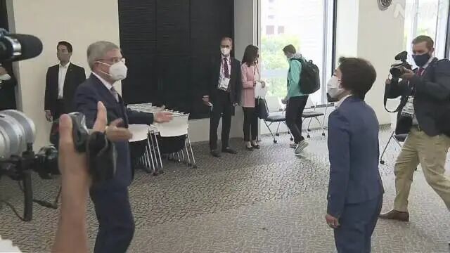7月13日,国际奥委会主席巴赫结束隔离,召开抵达日本后的首场记者会。