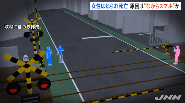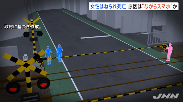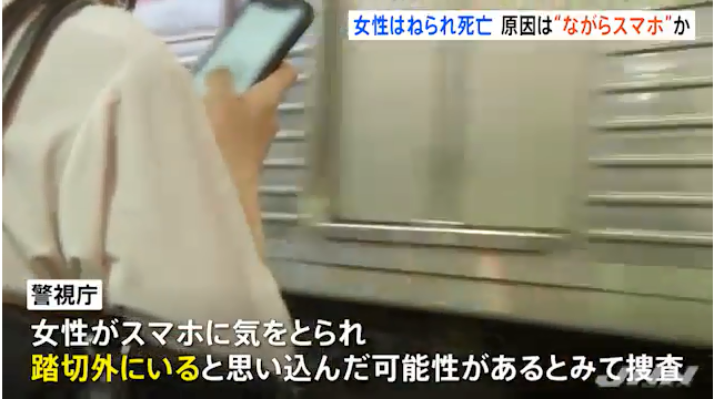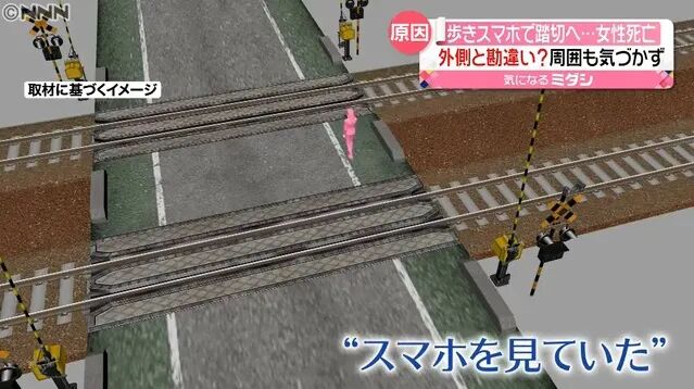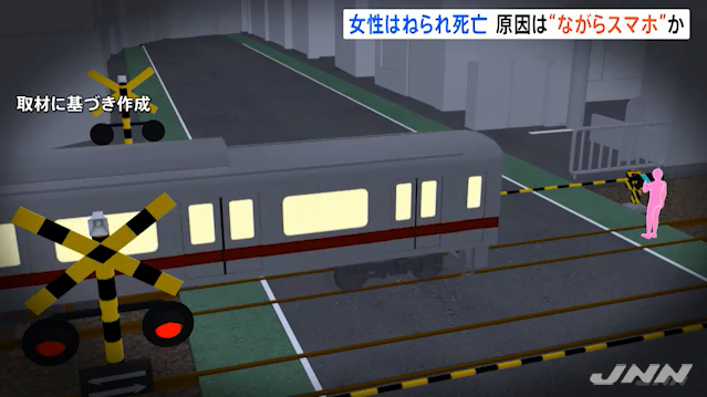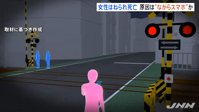 30秒后,电车飞驰而来,冲向此时此刻仍站在铁轨上,看手机入神的女子……女子当场死亡。