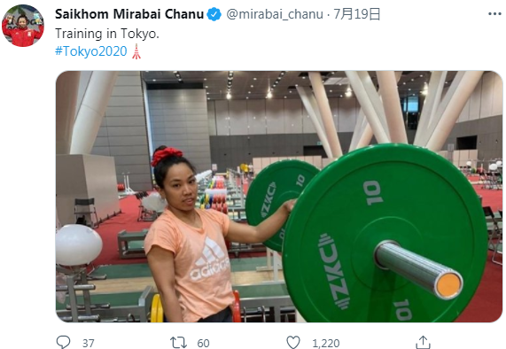 推特上,有一名叫Saikhom Mirabai Chanu的印度女子48公斤级举重运动员,曾拿过世界冠军。