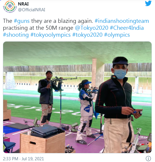7月18日入住奥运村后,印度射击队也于7月19日,在东京朝霞射击场开始训练。