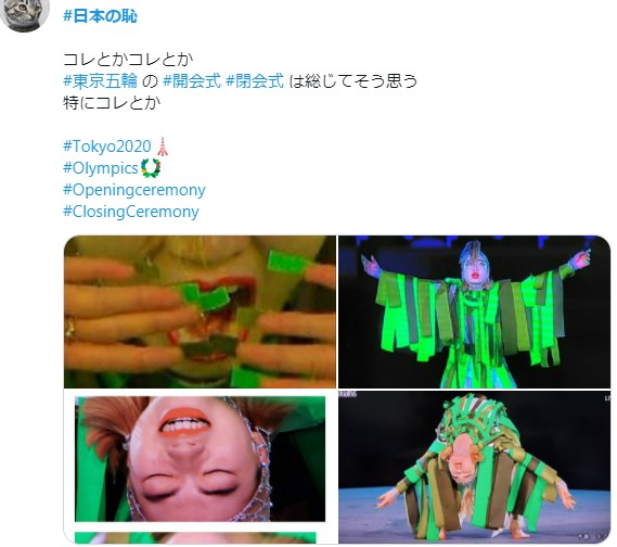 ●对闭幕式有过期待的我,是个蠢货。好不容易能被外国的各位有所期待了吧……太没意思了对不起。这是日本之耻。