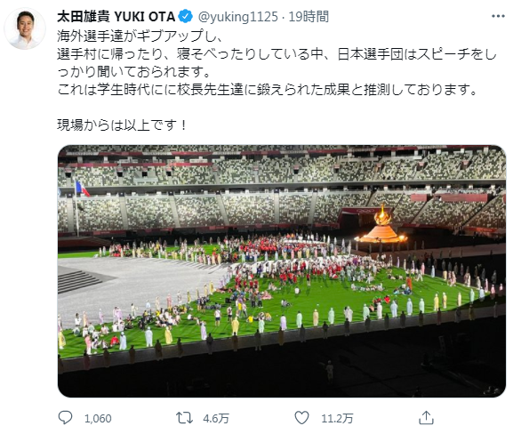 太田雄贵发了一条推,比较委婉地提到外国运动员们“认输”了。有的已回了奥运村,有的在现场地上躺平了。