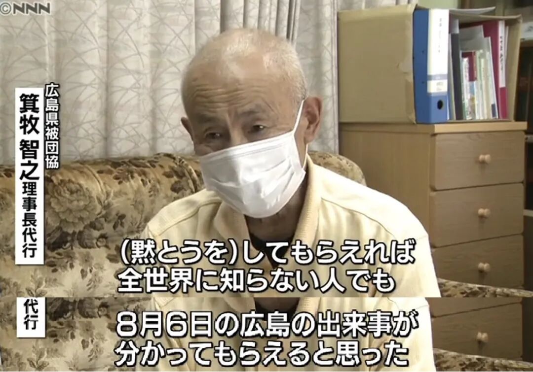 被爆者的诸位,由于投下原子弹这个人为带来的灾祸,至今仍在因恐怖与健康受害而痛苦。