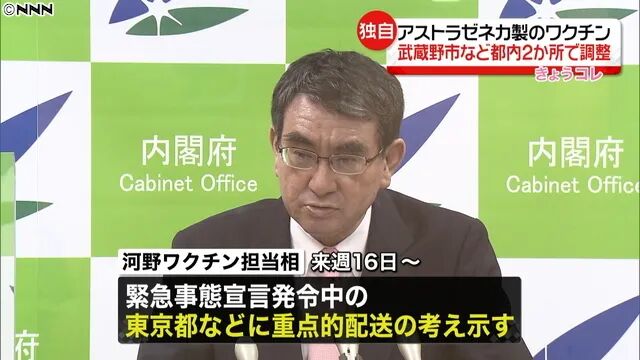 政府已于8月10日宣布,自8月16日起,给东京、神奈川、千叶、埼玉、大阪、冲绳等六地,安排英国产的AZ疫苗(阿斯利康)。
