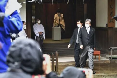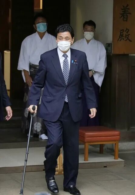 日本防卫大臣岸信夫,8月13日参拜靖国神社。他是前首相安倍晋三的亲弟弟。战犯岸信介的外孙,过继给亲舅舅以继承岸氏家族的政治资产。