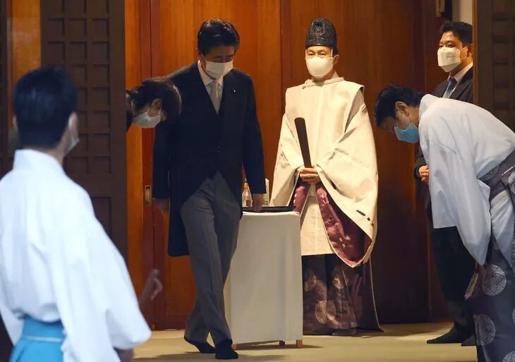 前首相安倍晋三,8月15日当天,身着礼服参拜靖国神社。虽无官职,却是以上几人当中咖位最大,极可能再次上台的人物。