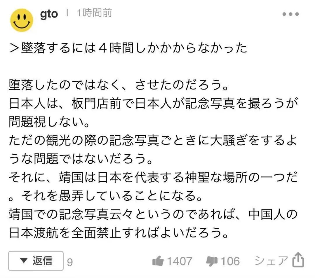 如果要叨叨在靖国神社拍纪念照,全面禁止中国人来日本不就行了。