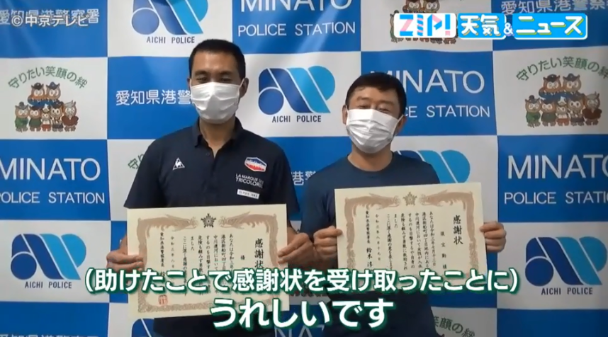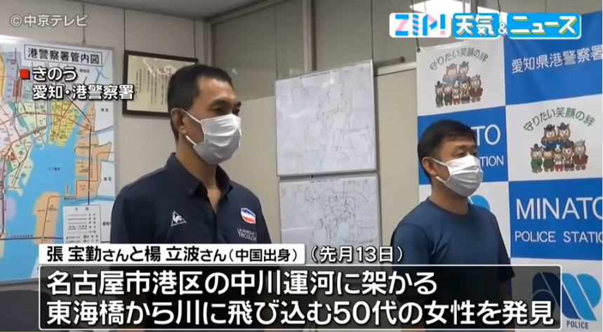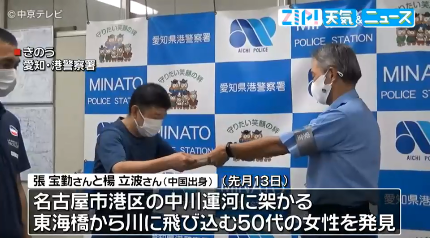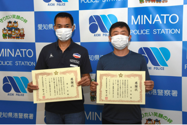 8月19日,爱知县警港警署向张宝勤和杨立波颁发感谢状。