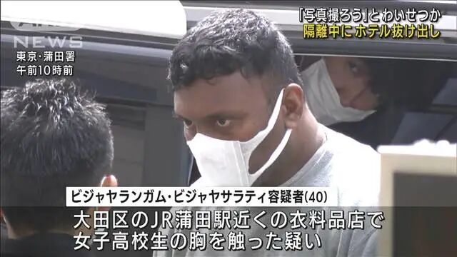 8月19日,他从隔离酒店偷跑出来,进了大田区蒲田车站附近的一家服装店。