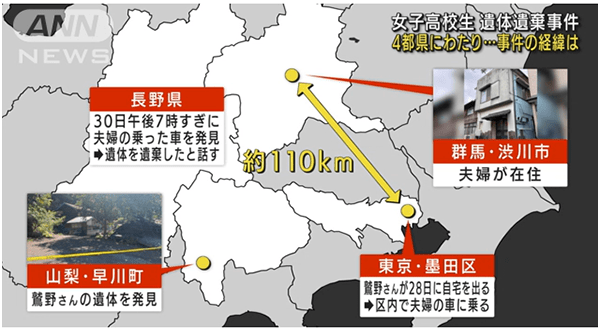 ●16岁的东京女高中生在推特上,结识了住在群马的26岁男人。两年后,男人的老婆因为妒忌两人关系,于是夫妇俩一起杀害了女高中生。无法理解。