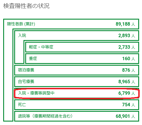 光是东京都,就有6799人因没有床位,处在待机等待空床位的状态下。每天新增患者,还在1000多1000多的涨……