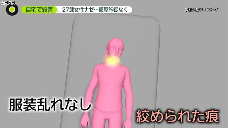 后经司法解剖,确认她是窒息致死,死后已过数日。在她脖子上,有被勒过的痕迹。