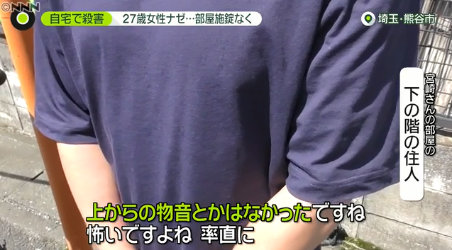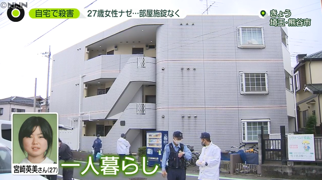 女子名叫宫崎英美,27岁,职业不详。她独自居住在熊谷市的这栋公寓楼里。每间房的面积不大,住户大多是单身独居。