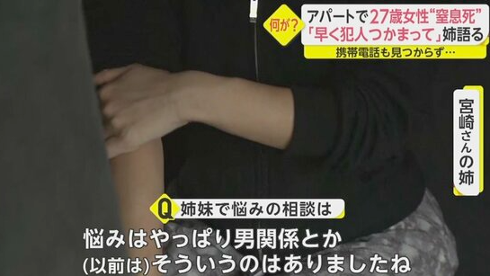 宫崎英美的父母都不在了,只有一个亲姐姐。不知为何,曾经关系亲密的姐妹俩已有五六年不联络了。