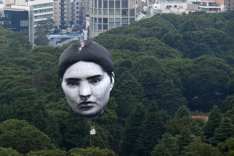 为了迎接东京奥运会,突然出现在涩谷上空的巨大人头。