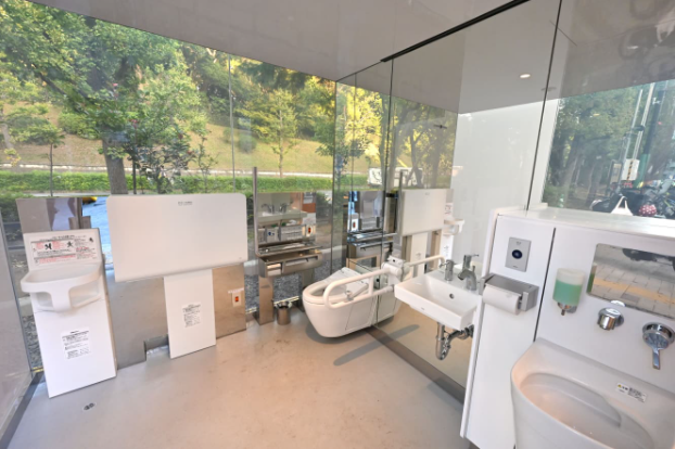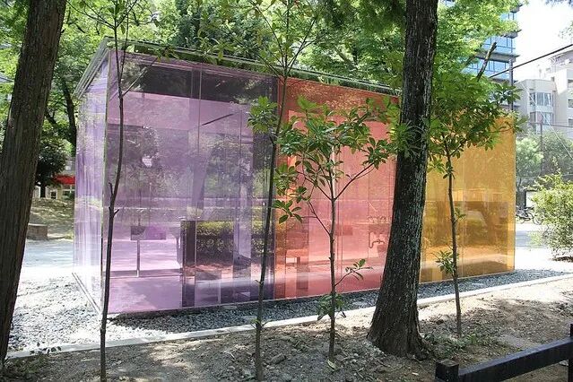 由知名建筑师城茂设计的这款360度无死角,全透明的公共厕所,位于代代木深町小公园内。估计它是这些大师级公共厕所里,目前知名度最高的打卡胜地吧。