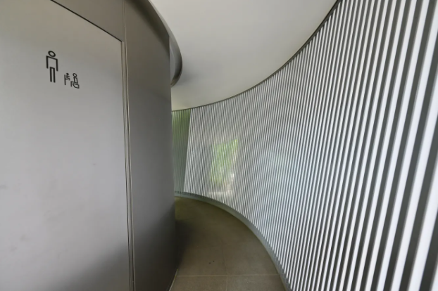厕所里到处是圆圆的弧线,也行吧,反正不是自己家。