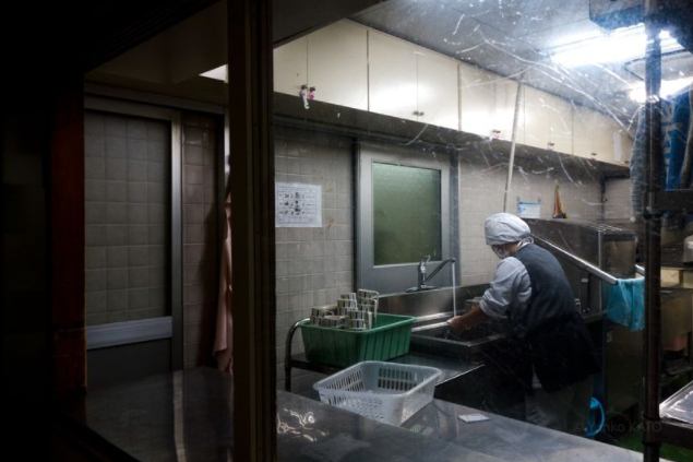 他的工作,就是在这家介护设施的厨房洗碗配餐。据说同事们都挺喜欢他。