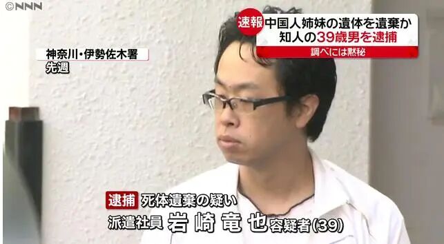 7月21日,39岁的日本男子岩崎龙也因涉嫌抛尸,被警方逮捕。