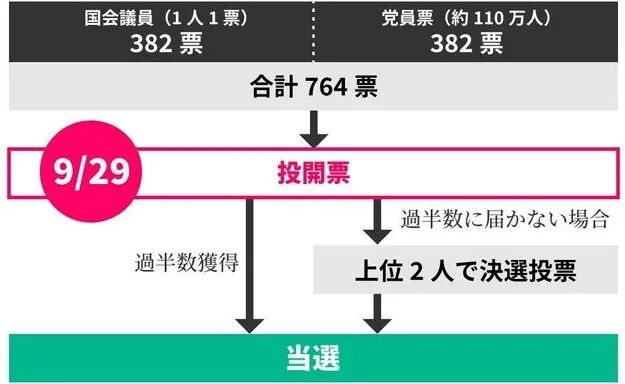 ●110万自民党员・党友的选票,被换算成382张大选票。