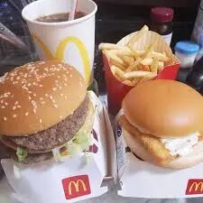 麦记的巨无霸套餐,听起来巨大,但实际量就那么多。我得多点一个麦香鱼汉堡才是真的够。