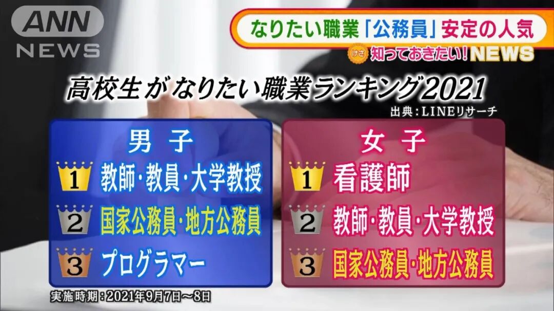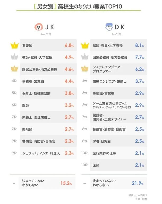 像中国人多用微信一样,日本人多用LINE。日前,LINE面向高中生们进行了一项调查:将来你最想从事哪种职业?