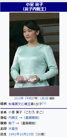 婚讯一经宫内厅正式宣布,维基百科上,真子公主已从“真子内亲王”变更成“小室真子”了。