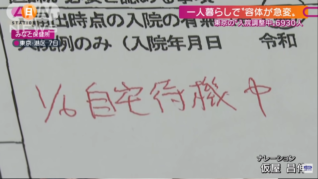 目前,全日本有35000名以上的新冠感染者,处于在家等待自愈,或等待床位的状态中。