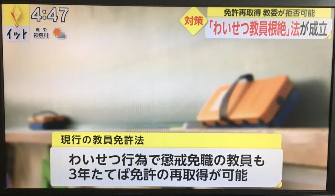 为了防止儿童遭受教师猥亵,阻止有性犯罪前科的老师再次执教,直到今年5月,才通过《猥亵教员对策新法》。
