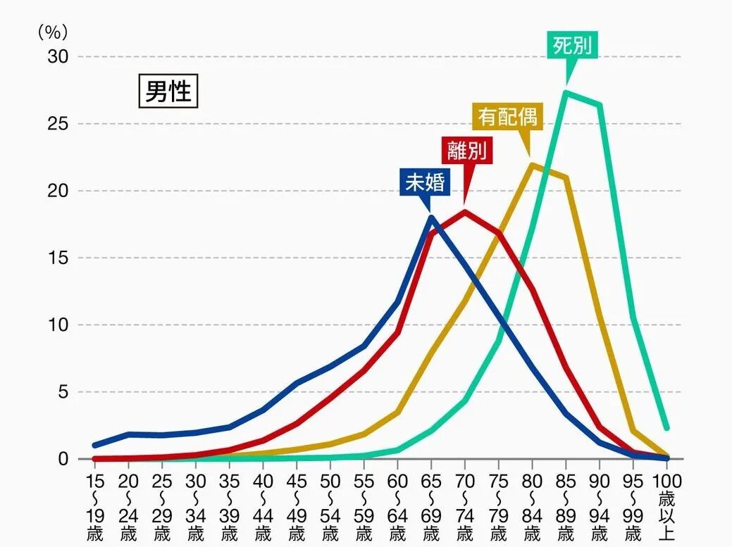 归捋下来,发现:已婚有配偶的男人比未婚男人更长寿,而且长寿得多!