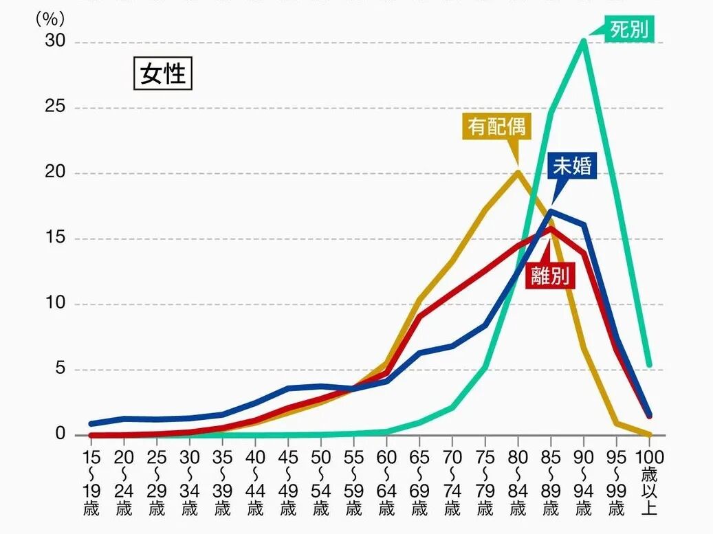 自2000年往后,未婚女性比已婚有配偶女性更长寿的现象,已在日本社会稳定下来。