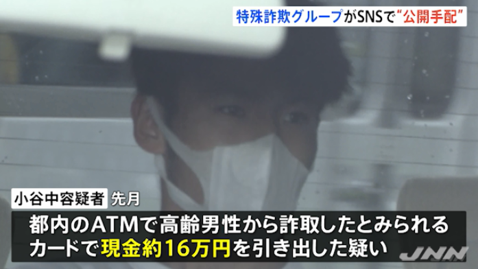 小谷中宏介就是这桩诈骗案中的“露面角色”,扮演警察。受害人是个70多岁的东京老大爷,他拿着从大爷那儿骗到手的信用卡,在ATM上取出来16万日元现金。16万日元,折合人民币9000都不到。
