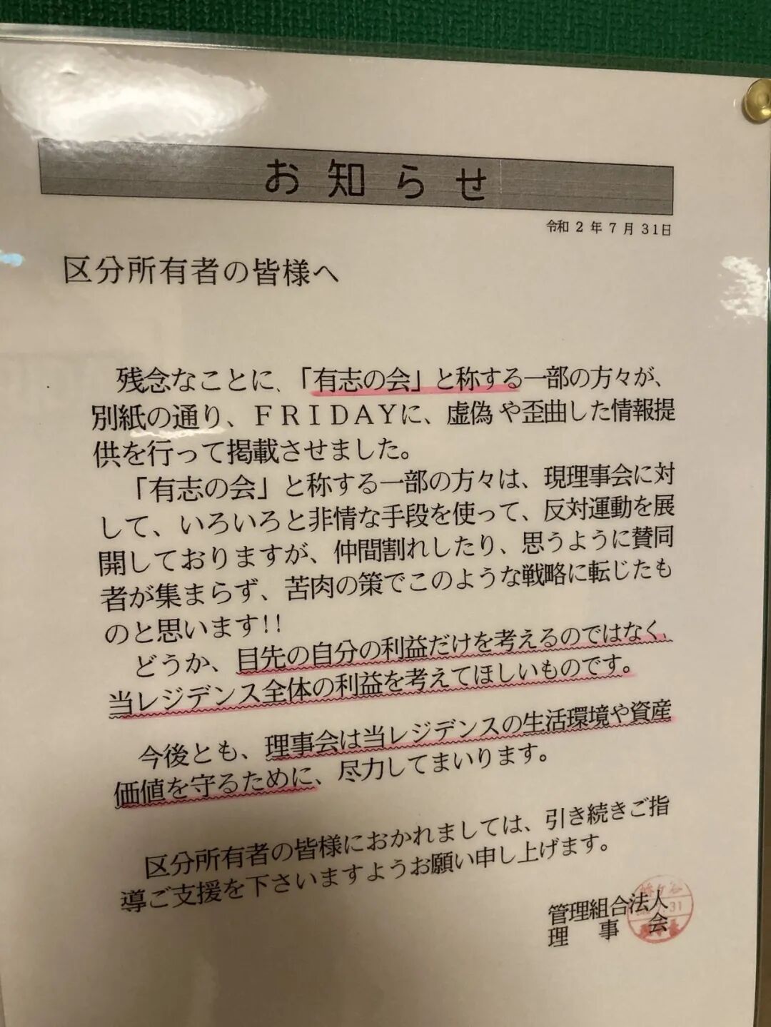 2020年,多名业主们联合起来,成立了“有志者之会”,并把公寓里的这些变态事情告诉给了媒体。就为推翻现在的业主管理委员会,拯救大家的财产。