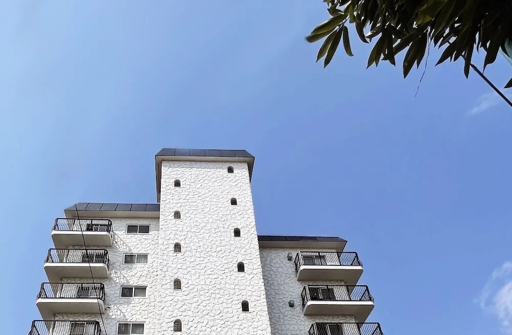 虽然公寓比较老,1974竣工至今已有47年之久,但整体维护看上挺不错。依稀看得出当年设计的南欧风情。