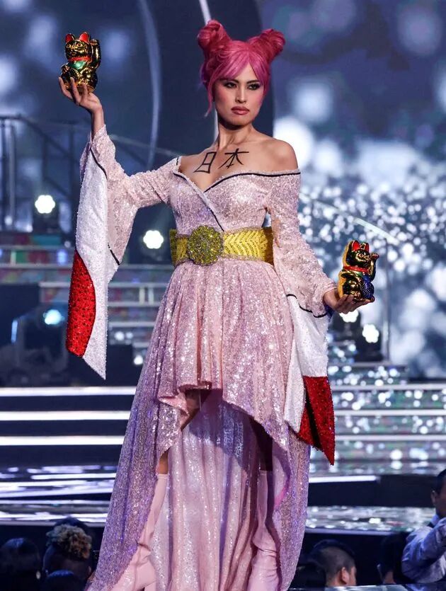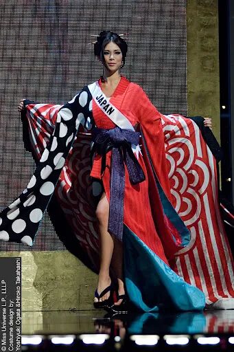 环姐选美的民族服饰环节,以设计感奇特著称,确实容易出现特别丑的。而日本小姐参加过的决赛舞台上,又确实有过身着民族服饰惊艳全场的。