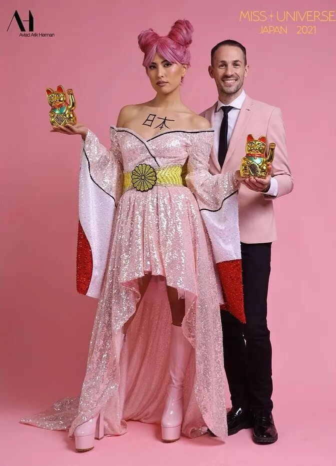 以往日本小姐在环姐舞台上惊艳世人的民族服饰都是由日本设计师精心设计,怎么让一个不懂日本文化的老外来揽活儿?