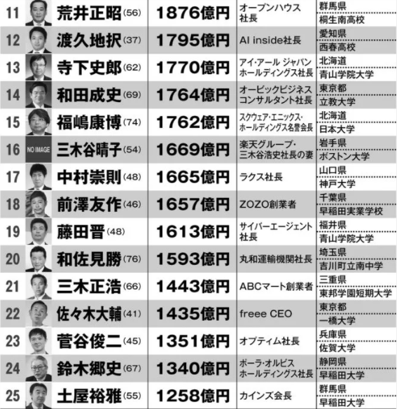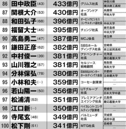 著名财经周刊《Money Post》发布了最新版日本富豪榜TOP100。