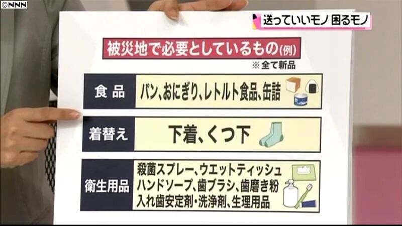 ●捐往受灾地区的救援物资要分优先顺序,优先捐赠当地的必要物品。卫生巾列在其中。