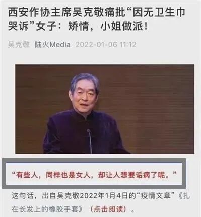 结果,这老头儿所代表的顽固且无知的男性观点,被女性网民喷成了筛子。待遇就和今天的作协吴主席们差不多。