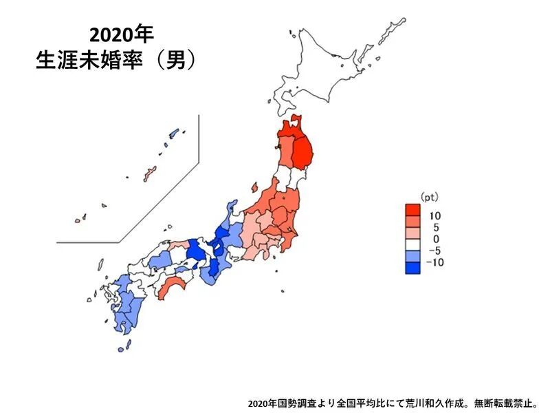 各家总结的角度,真是一绝,比如东日本不结婚的男人多,西日本不结婚的女人多。