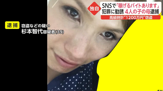 她是一名39岁的主妇,名叫杉本智代,家住岐阜县。与丈夫恩爱,育有四个孩子,平时热衷追星。穿着化妆都很时髦,看上去生活富裕,不像缺钱的样子。