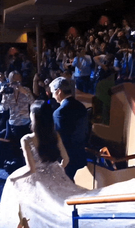 婚变传闻后首次合体,著名的提裙子。当时通稿写了不少天宝从仰视教主,变成教主为她提裙子的大转变。