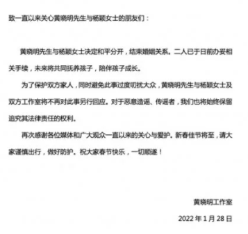 1月28日,官宣离婚了。