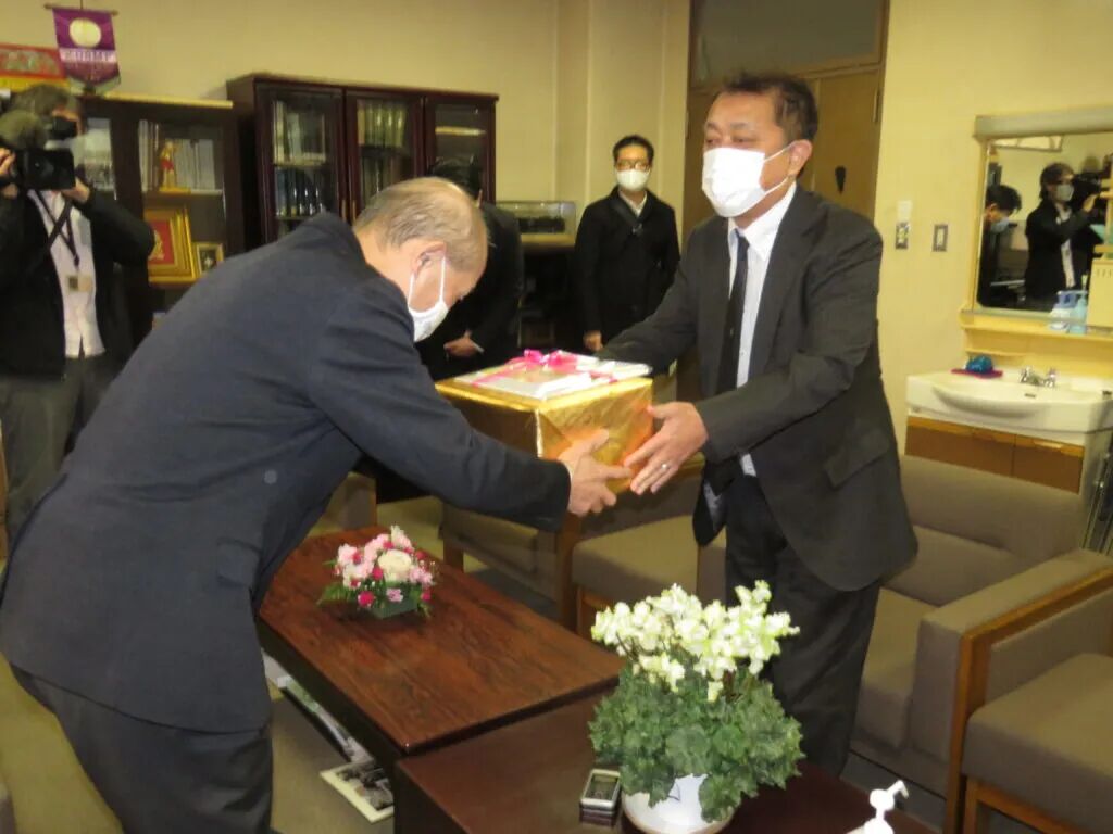 大叔用第一名得来的奖金,买了提高视觉机能的教材,赠送给和歌山大学附小,亲自交到校长手上。