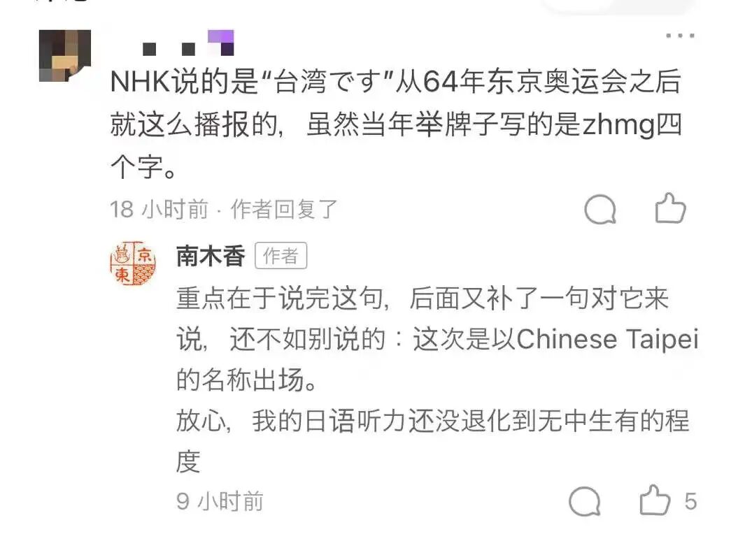 NHK的女解说,就是去年东京奥运会开幕式上,暗搓搓玩胎毒解说词的那位。许是尝到滋味,这次又是一上来就“台湾です”,刻意去中国化。