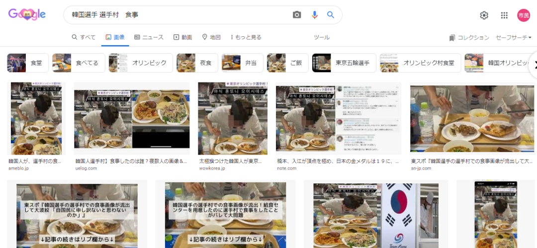 真笑不活了,日本网民是要把韩国运动员在奥运村吃饭吃得比谁都香的这张照片,半永久地焊死在google上吗?
