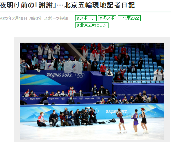 因为本届冬奥会采取严格的防疫泡泡模式,不能与外界接触。没有交通工具返回下榻酒店的话,日本记者已做好准备在此将就一宿,次日早晨赶第一班接送大巴返回酒店。