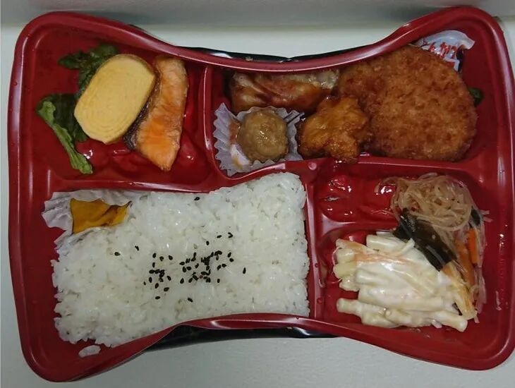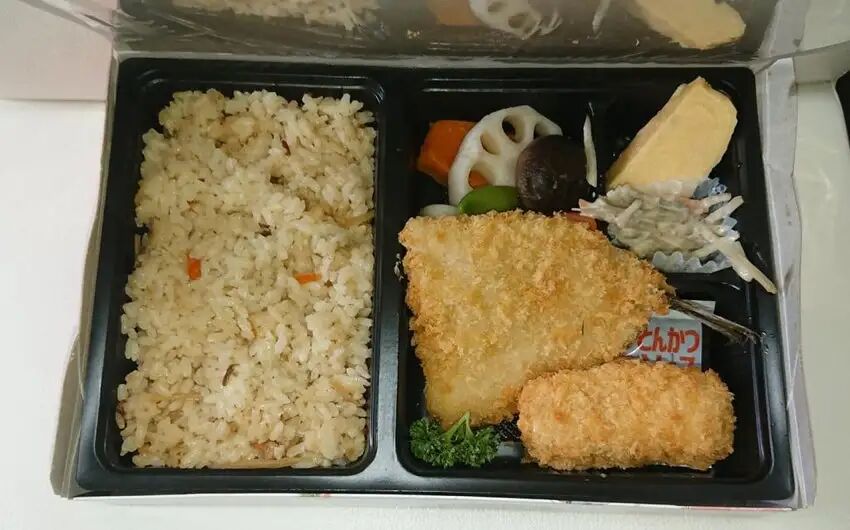 大叔吃的酒店隔离盒饭,则像上面这个正常碳水盒饭的迷你版。真有胃口吃的话,怎么吃得饱?就这,还1500日元标准?
