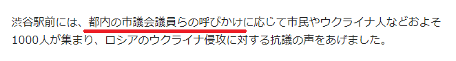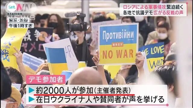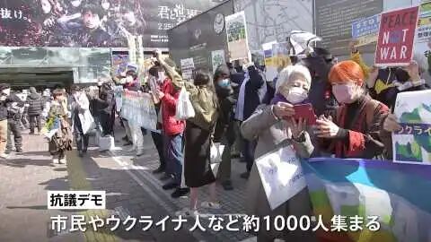 TBS电视台报道版:旅日乌克兰人、市民等约1000人参加集会。